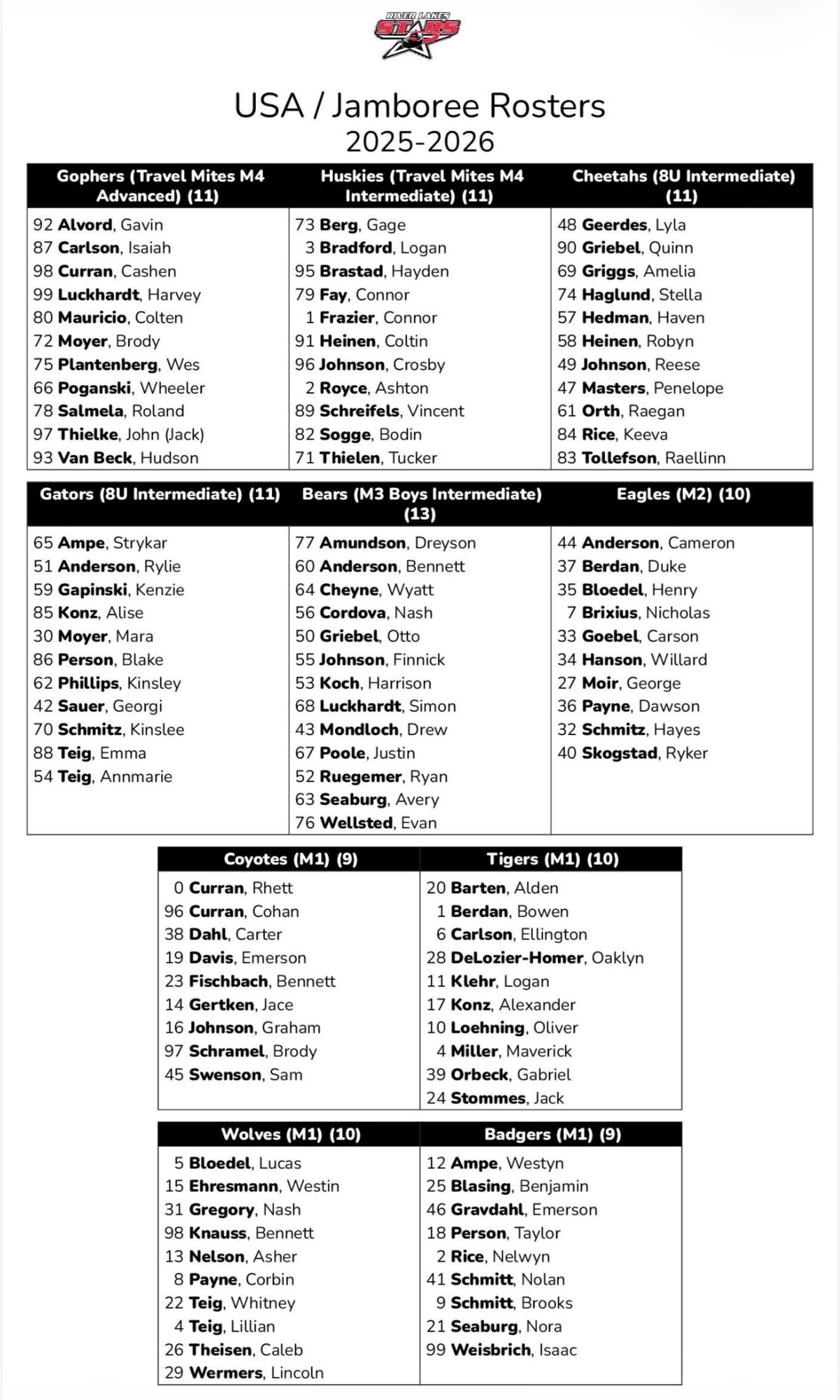 - All teams wear the BLACK & WHITE River Lakes reversible jerseys all weekend.