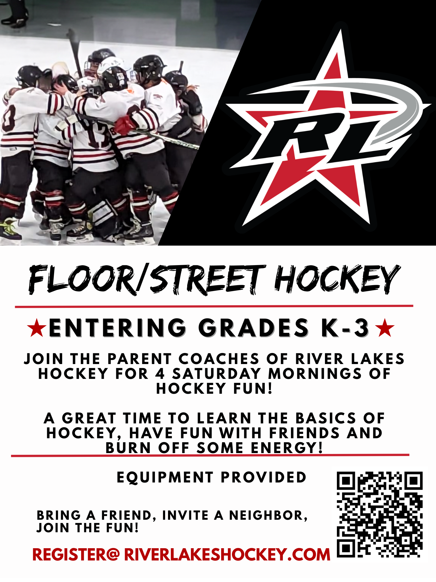 Join the parent coaches from River Lakes Hockey for 4 Saturday mornings in June of Floor Hockey Fun. A great time to learn a few basics for the game of hockey, have fun with friends and burn some energy off. Sticks and Pucks provided